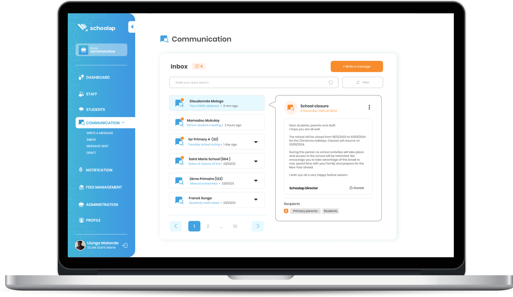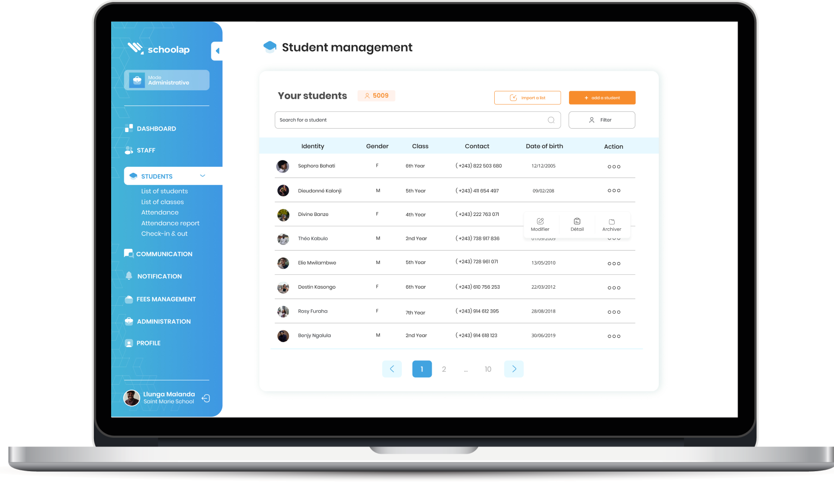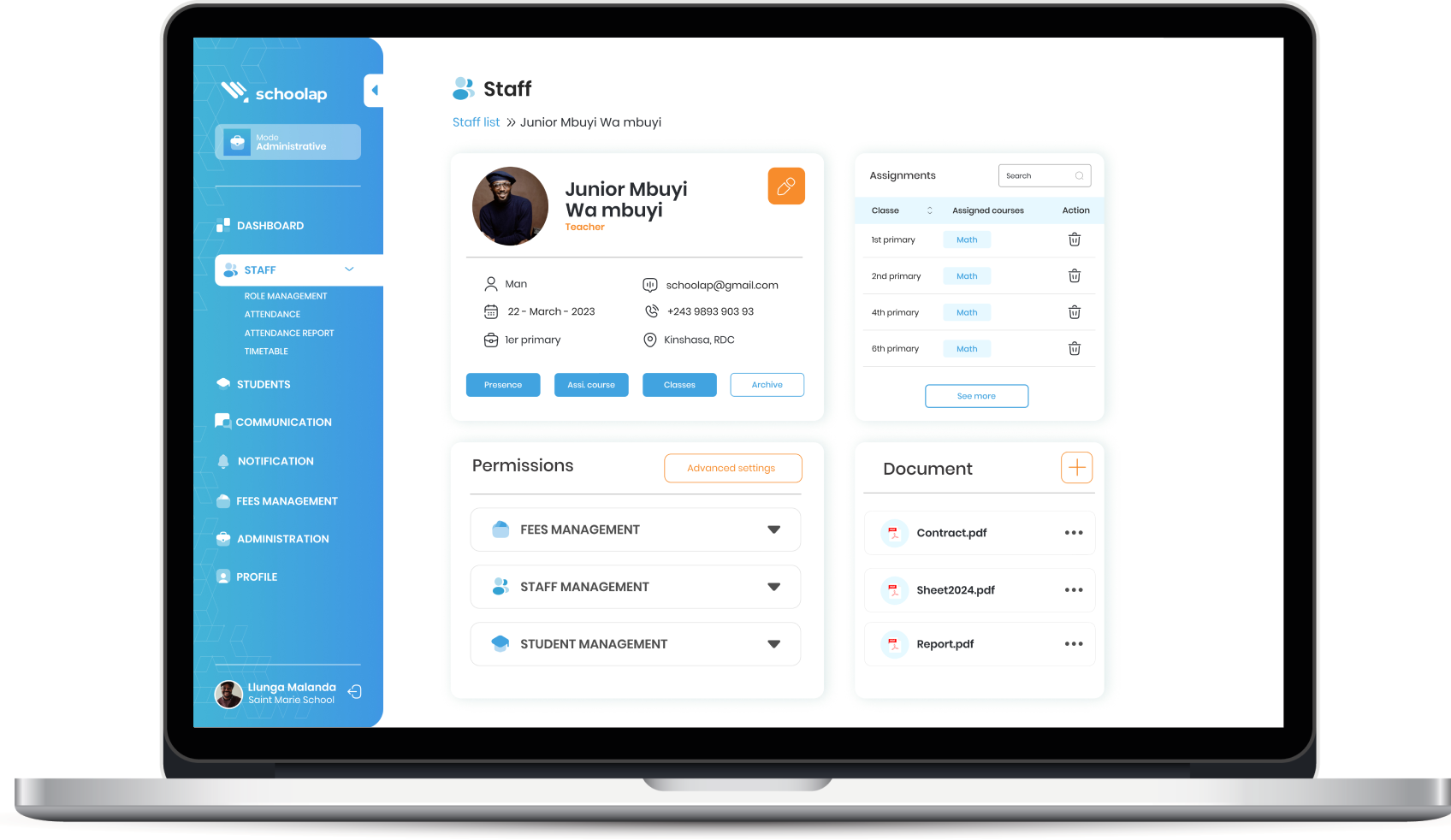 Schoolap centralizes administrative management, including staff and pupil management, report generation, and communication with staff and parents.