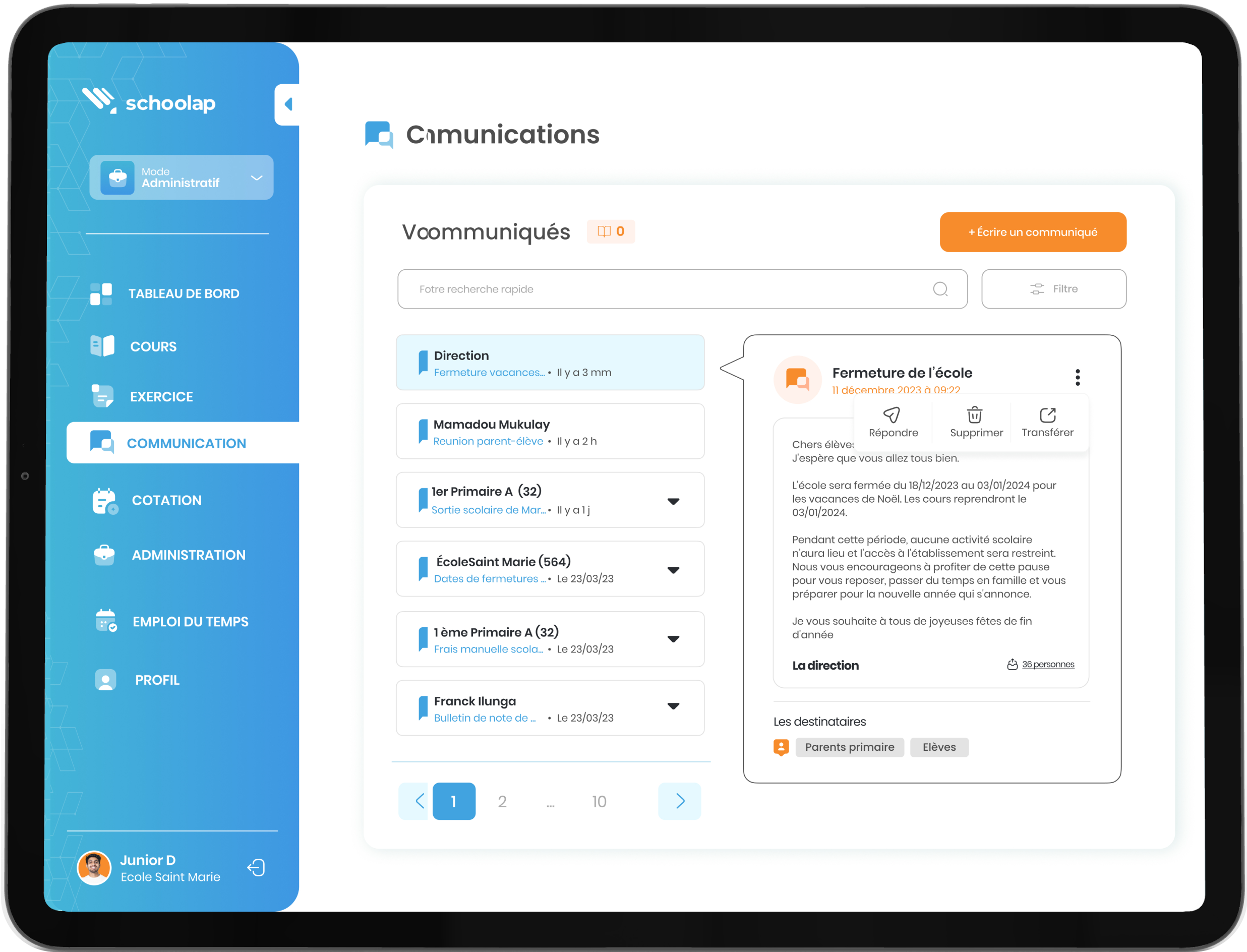 En tant qu’enseignant, vous disposez de plus de 30 fonctionnalités sur Schoolap. Voici les plus importantes: