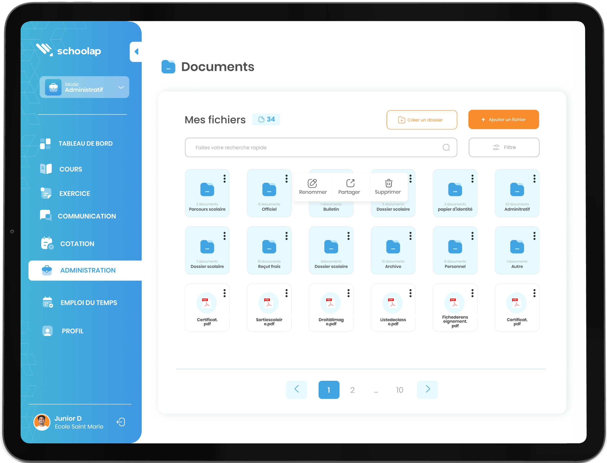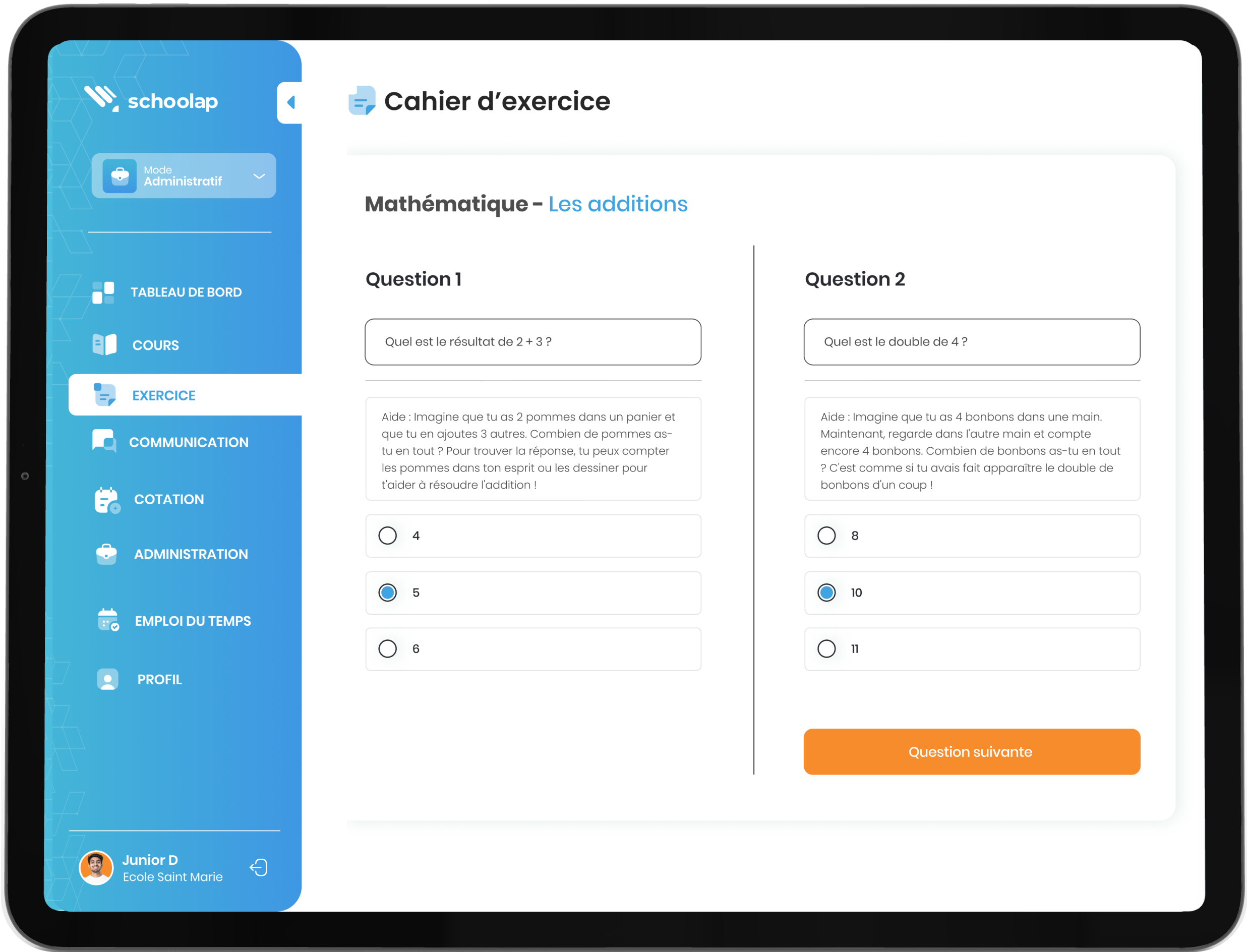 Schoolap offre aux élèves un accès facile aux devoirs, aux exercices et aux ressources pédagogiques, ce qui facilite leur apprentissage en ligne ou hors ligne.