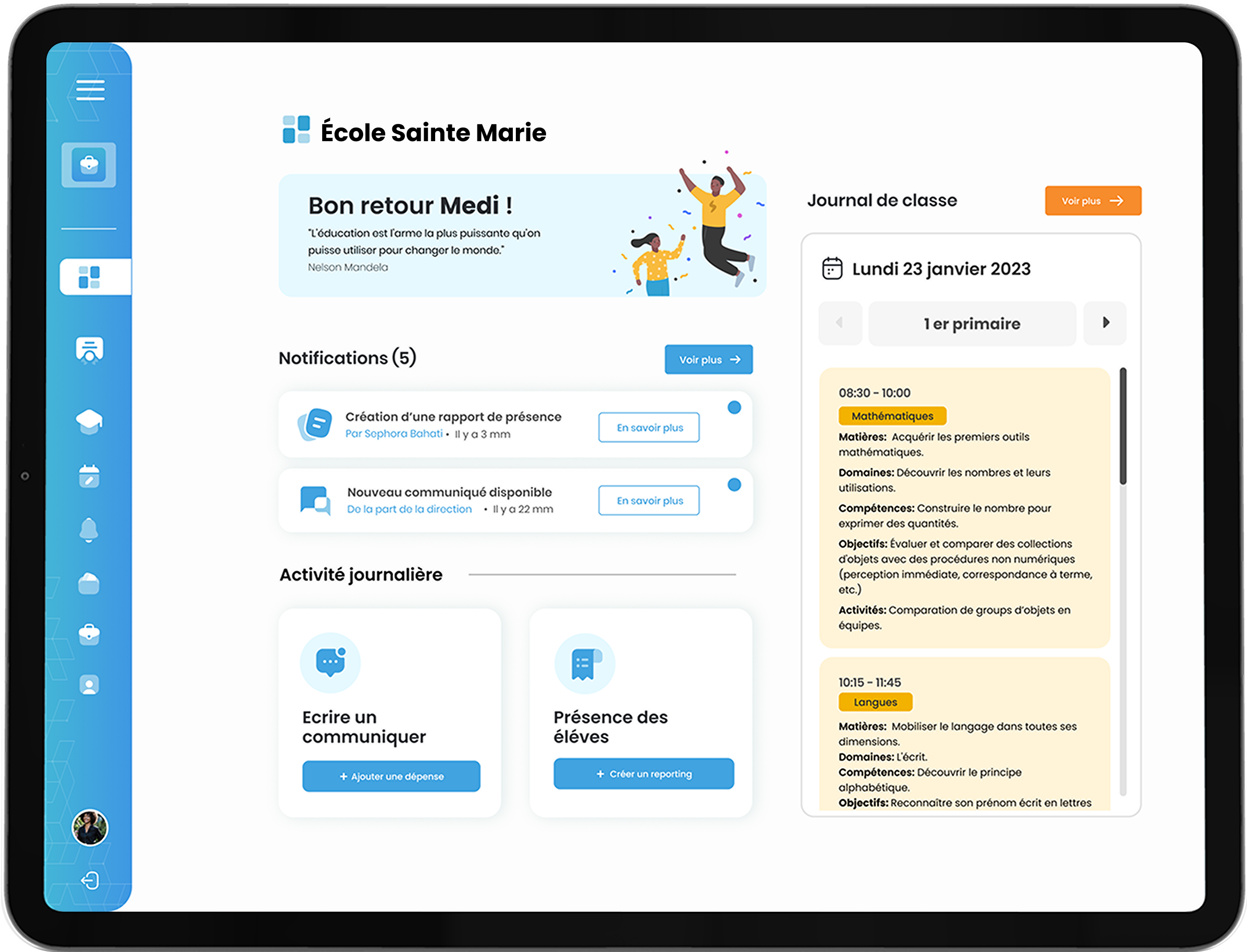 Une plateforme pour une gestion pédagogique efficace, conçue pour enseigner et inspirer vos élèves.
