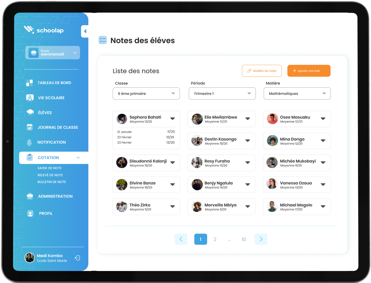 Schoolap permet de facilement suivre les progrès individuels des élèves grâce aux outils de suivi des notes et des performances.